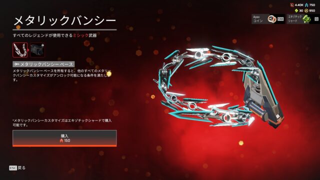 新スパレジェが突如販売開始 本日アプデが配信され、新スパレジェが突如販売開始されています。 ミシックアイテムタブに新たなユニバーサル格闘武器の「メタリックバンシー」が追 …