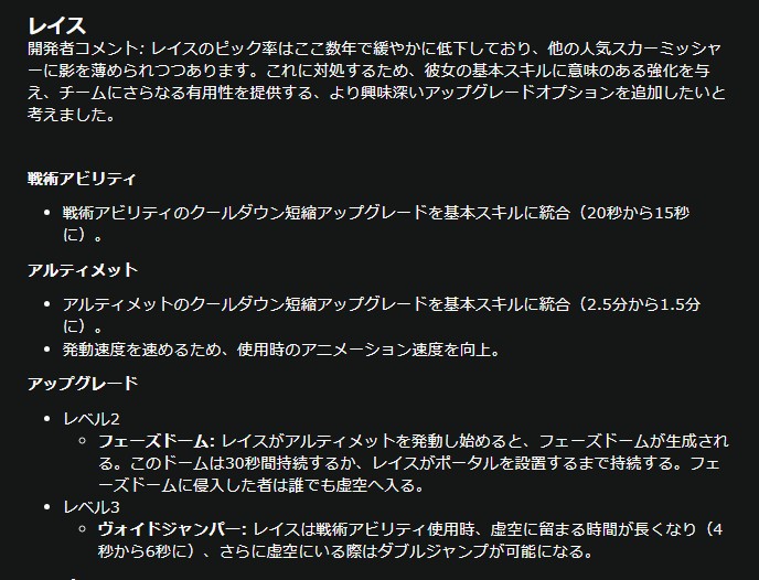 レイスULTが虚空ドームに進化、RE-45はエネルギーバースト続投、ジブは大幅バフ。