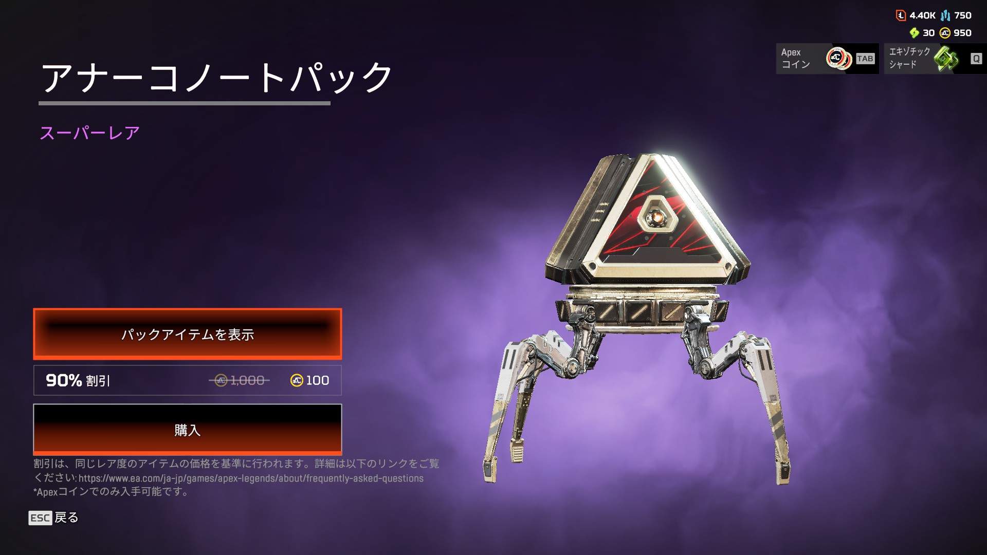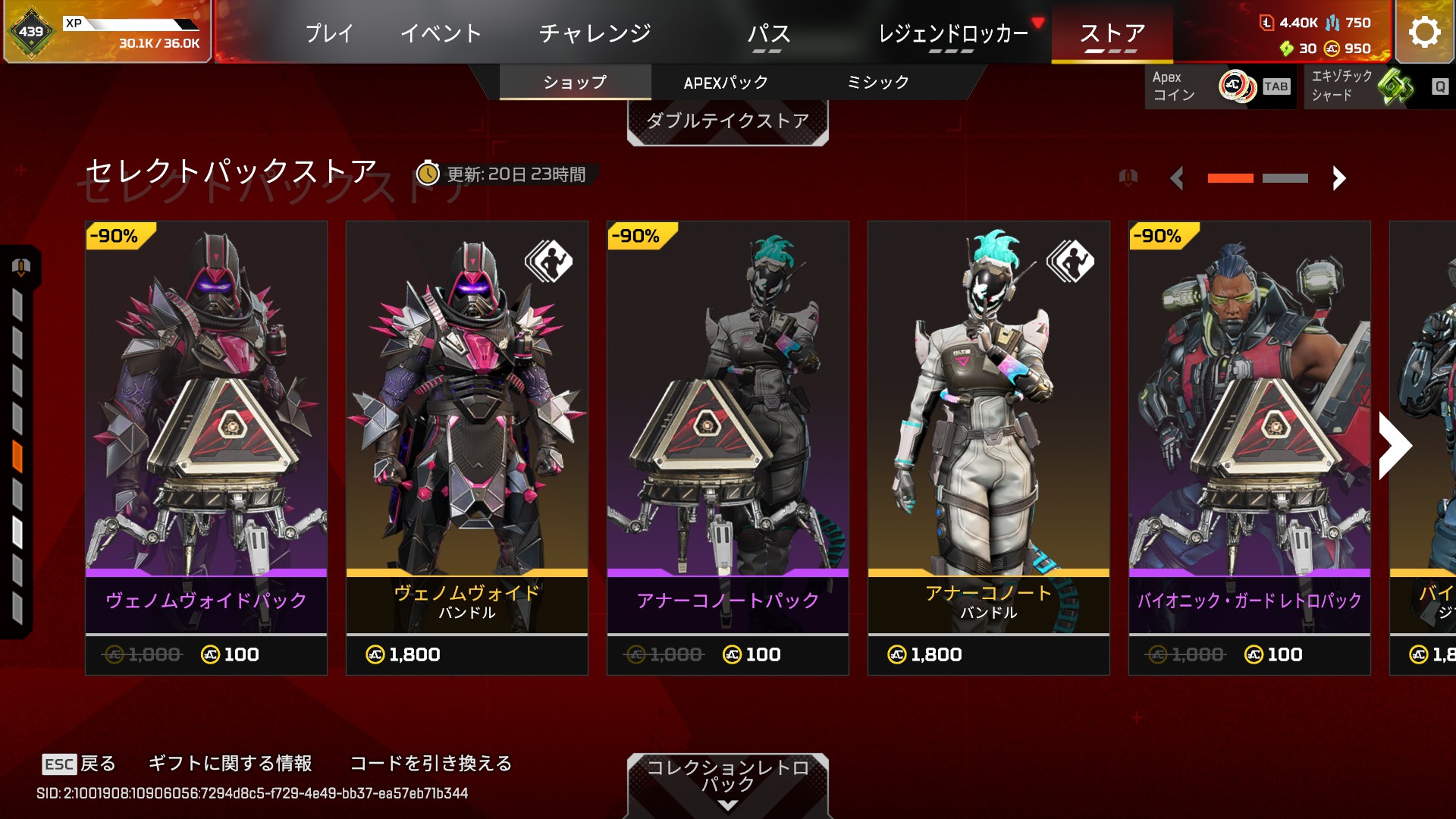 【Apex】ガチャで当たれば超お得?セレクトパックストアが更新