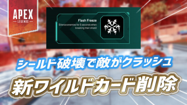 最新情報 【速報】新ワイルドカード削除 12月 17, 2025 y3 https://apexlegends-leaksnews.com/wp-content/uploads/2019/12/8904760a83ac8e439606921e514c72cd.png Apex Legendsまとめ速報 – えぺタイムズ 新ワイルドカード削除 本日のアプデでワイルドカードに追加されたフラッシュフリーズが削除されています。 フラッシュフリーズは「シールド破壊時に敵のアビリティを無効化する」 …
