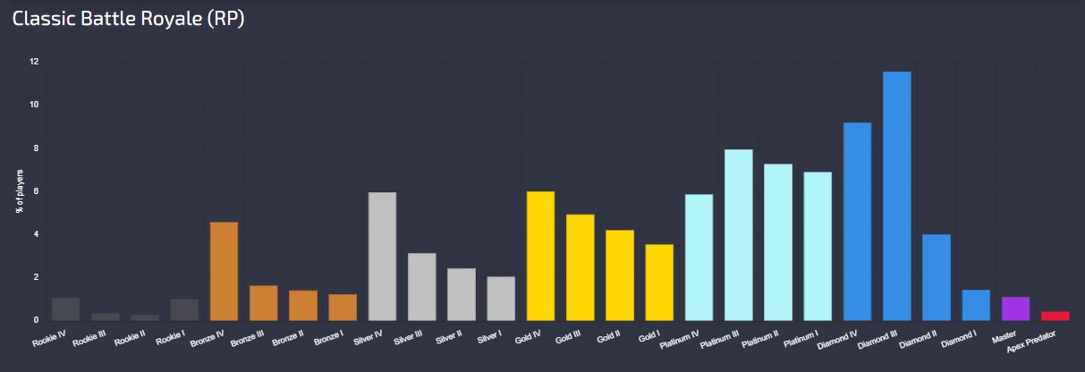 Apexlegendsstatus.comによる現在の『ランク分布率』は下記の様になっているとの事です。