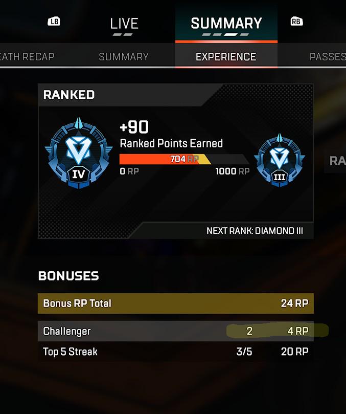 ダイヤで勝利して、プレデターを3人チャレンジャーキルしたのに2RPずつしかもらえなかった