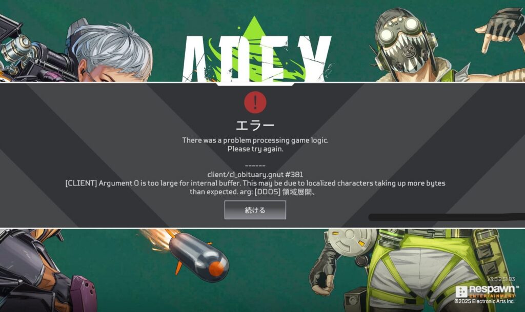 Switchでグリッチ使って名前文字数制限超えたクッッッッソ長いユーザーネームつけて、その名前が表示されるとAPEXのクライアントがデータ処理しきれずにバグって落ちる、っていうカラクリ