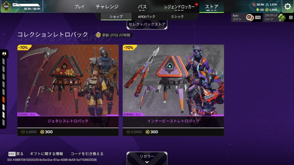 【Apex】コンプでスパレジェが入手可能!2種類のレトロパックが販売開始レトロパックが販売開始
