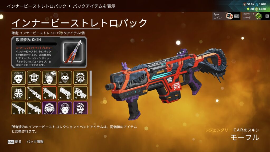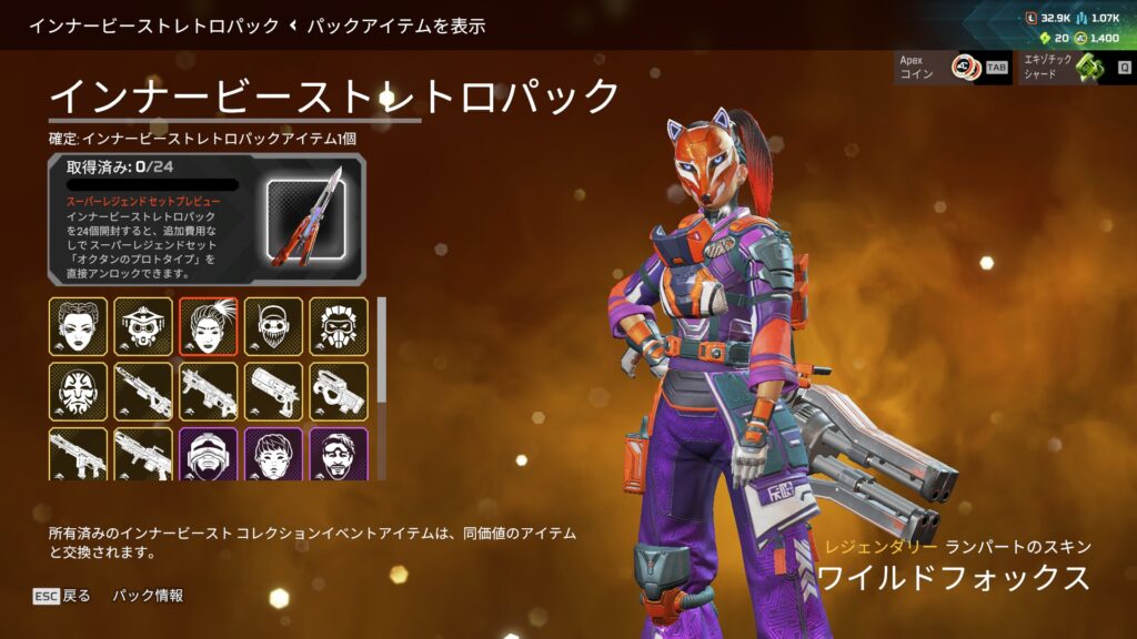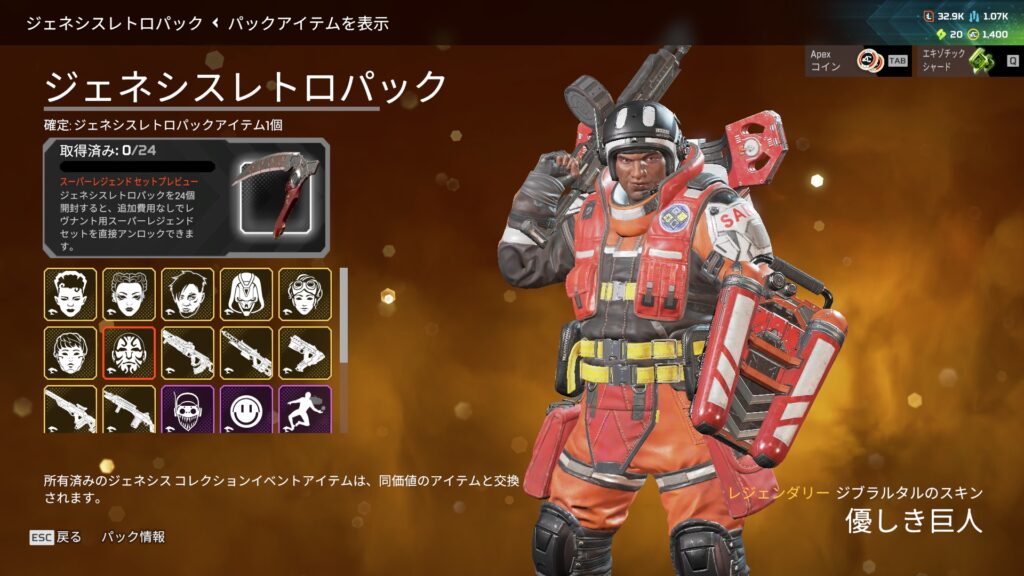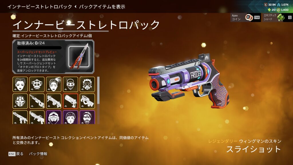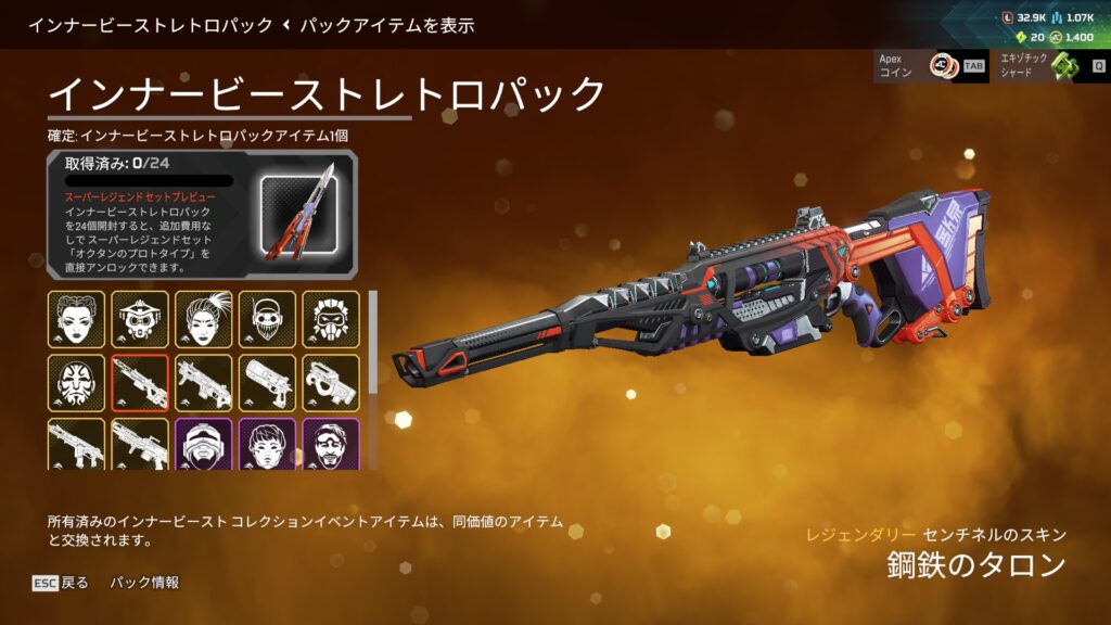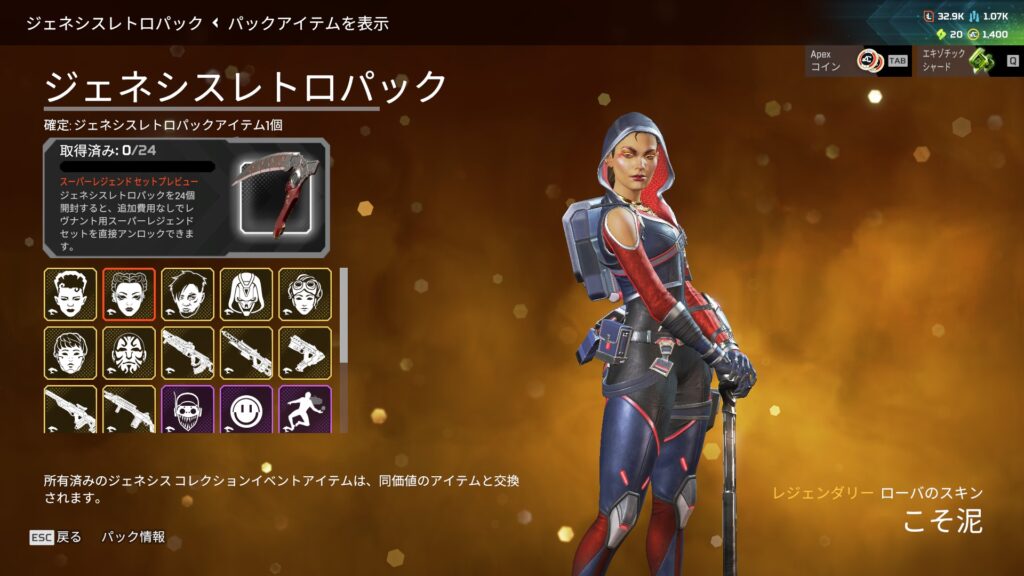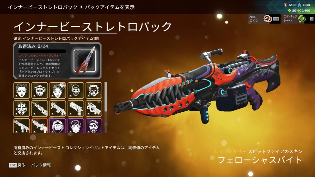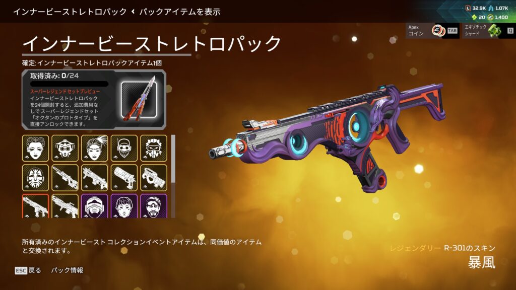 過去に開催されたコレクションイベントのアイテムが入手可能なパックで、コンプリートするとレヴナント&オクタン(色違い)のスパレジェが入手可能になっています。