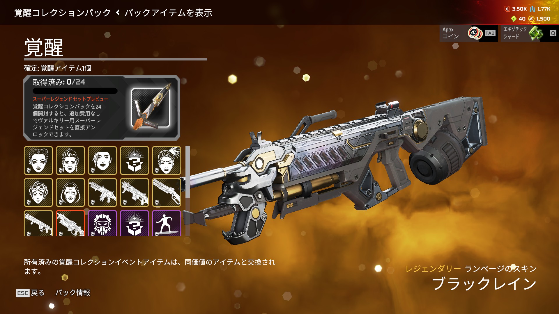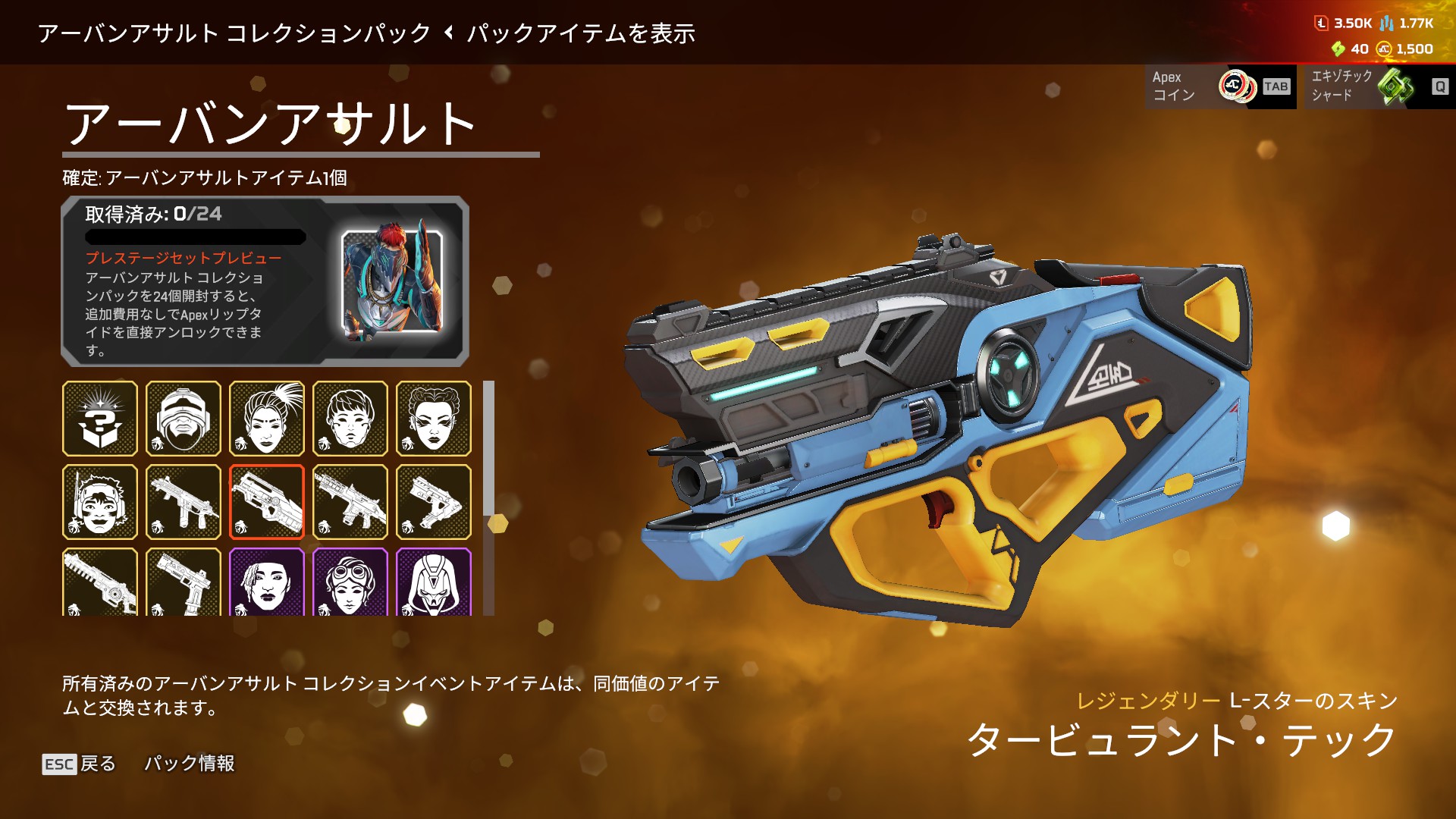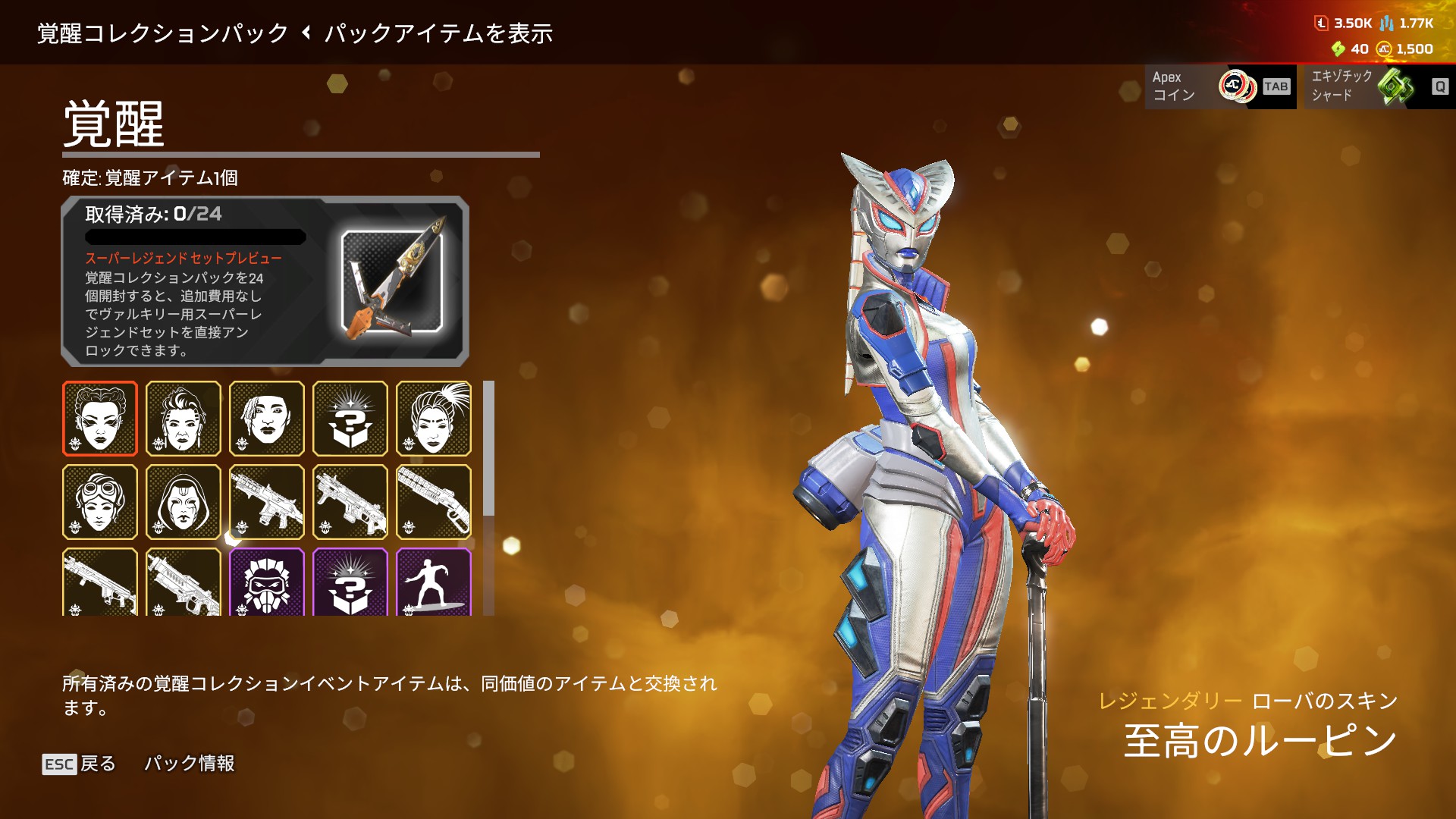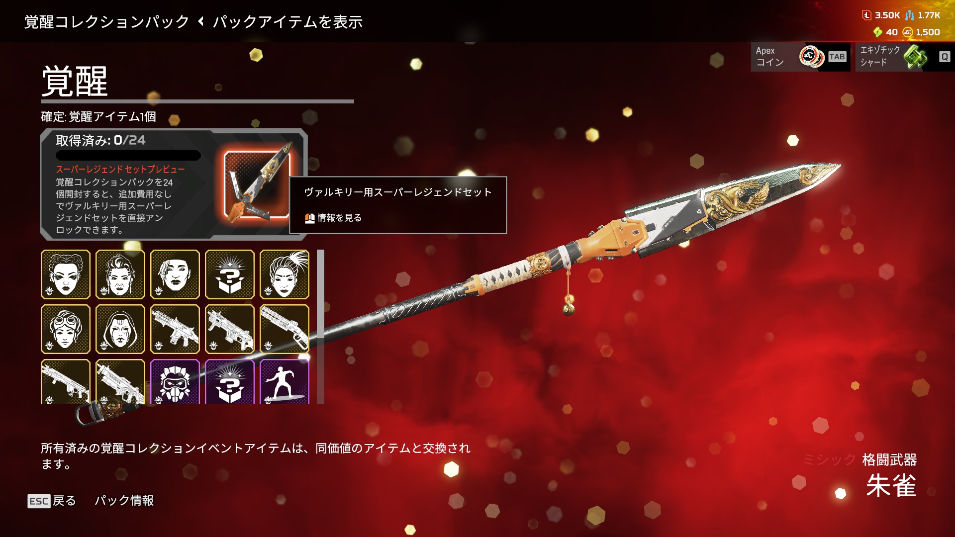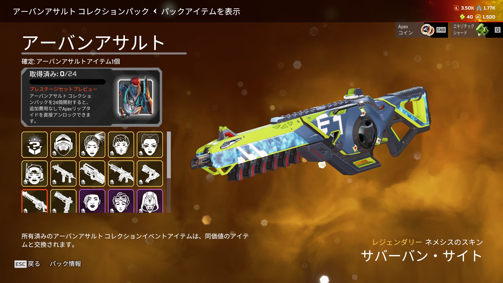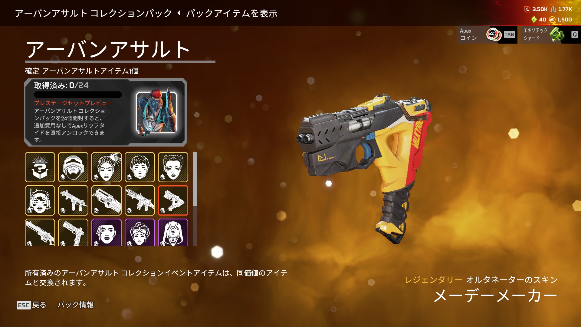 過去に開催されたコレクションイベントのアイテムが入手可能なパックで、コンプリートするとオクタンのプレステージスキン&ヴァルキリーのスパレジェが入手可能になっています。