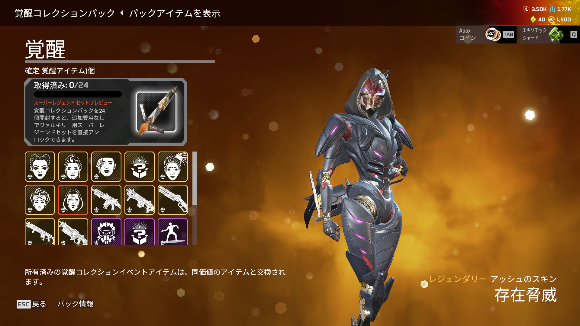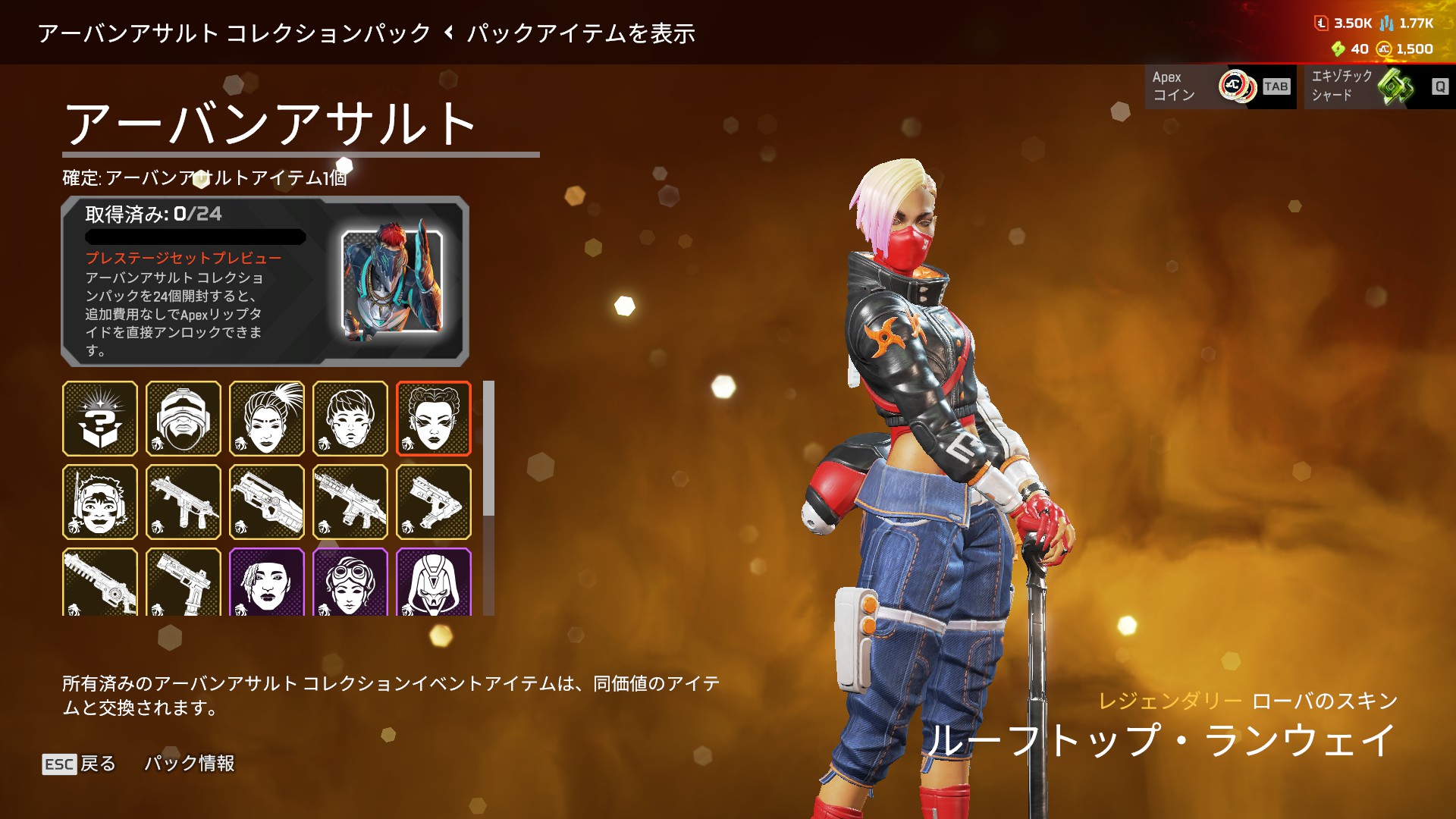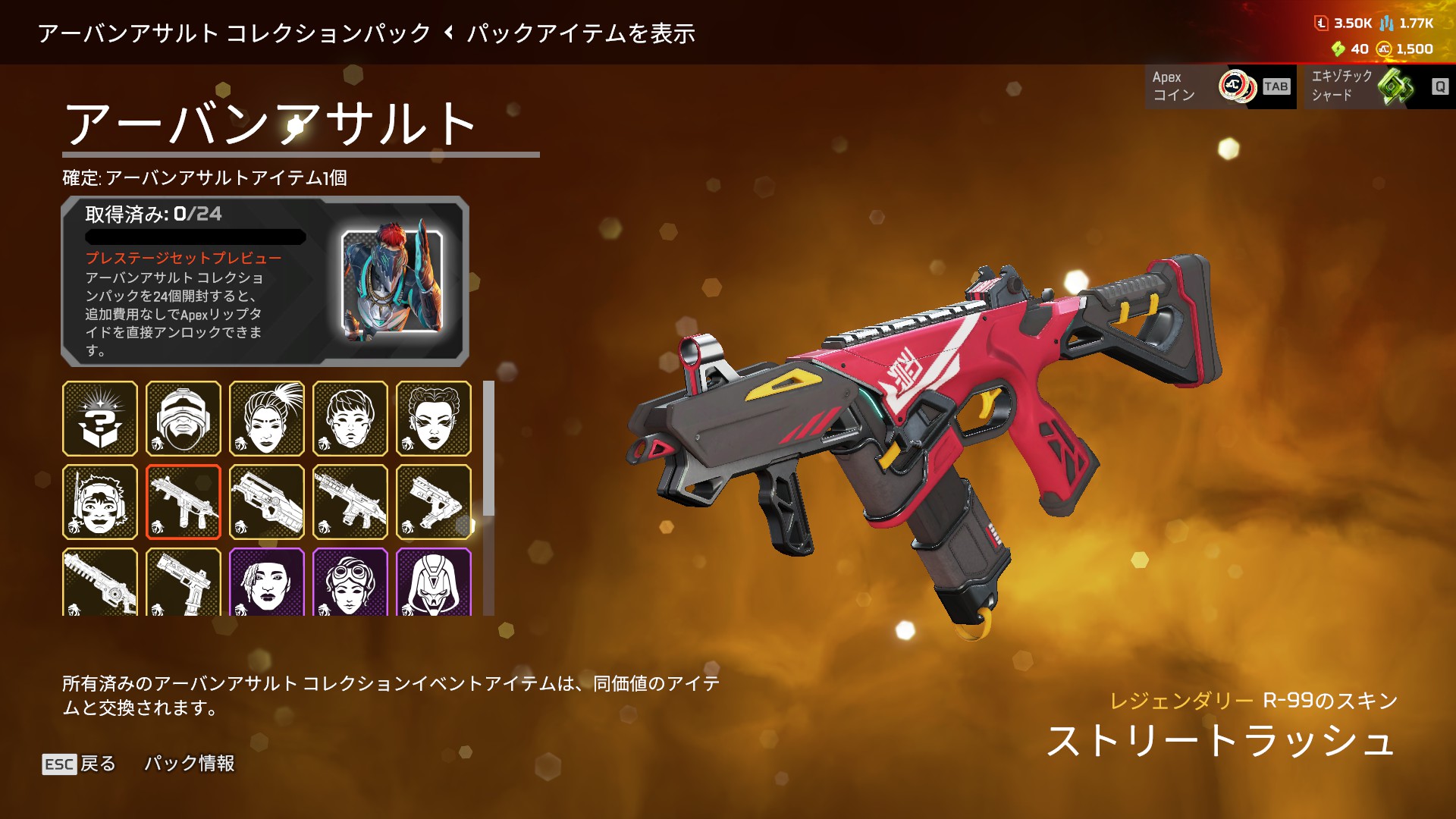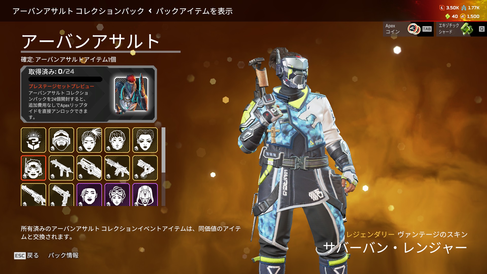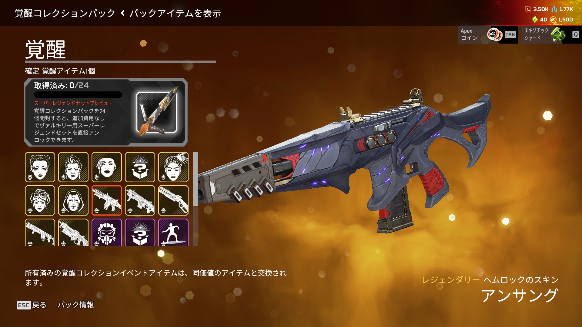 過去に開催されたコレクションイベントのアイテムが入手可能なパックで、コンプリートするとオクタンのプレステージスキン&ヴァルキリーのスパレジェが入手可能になっています。