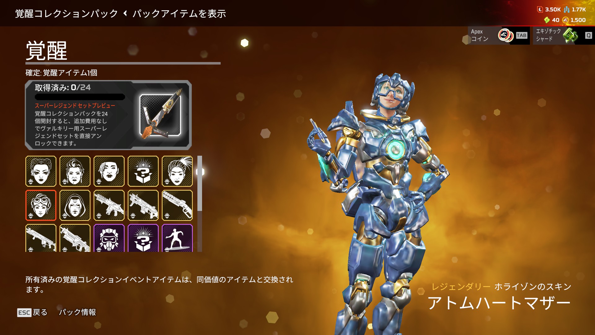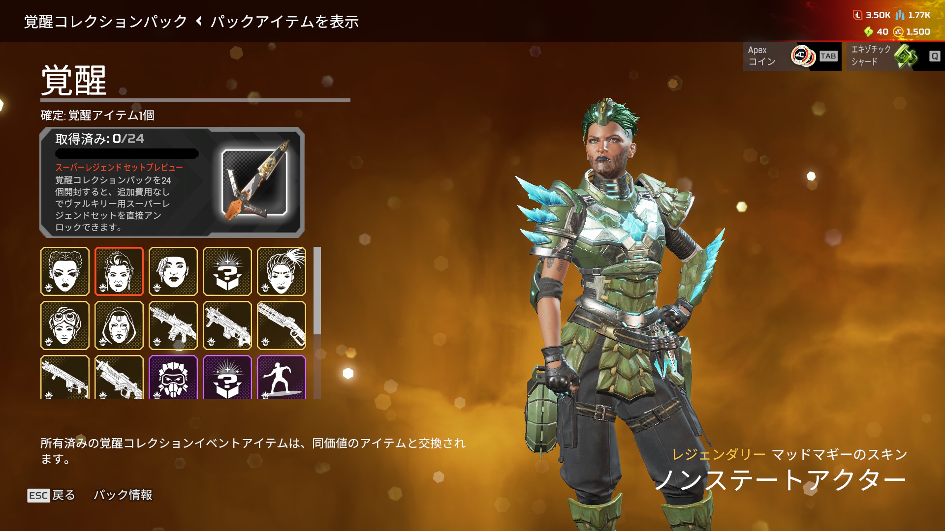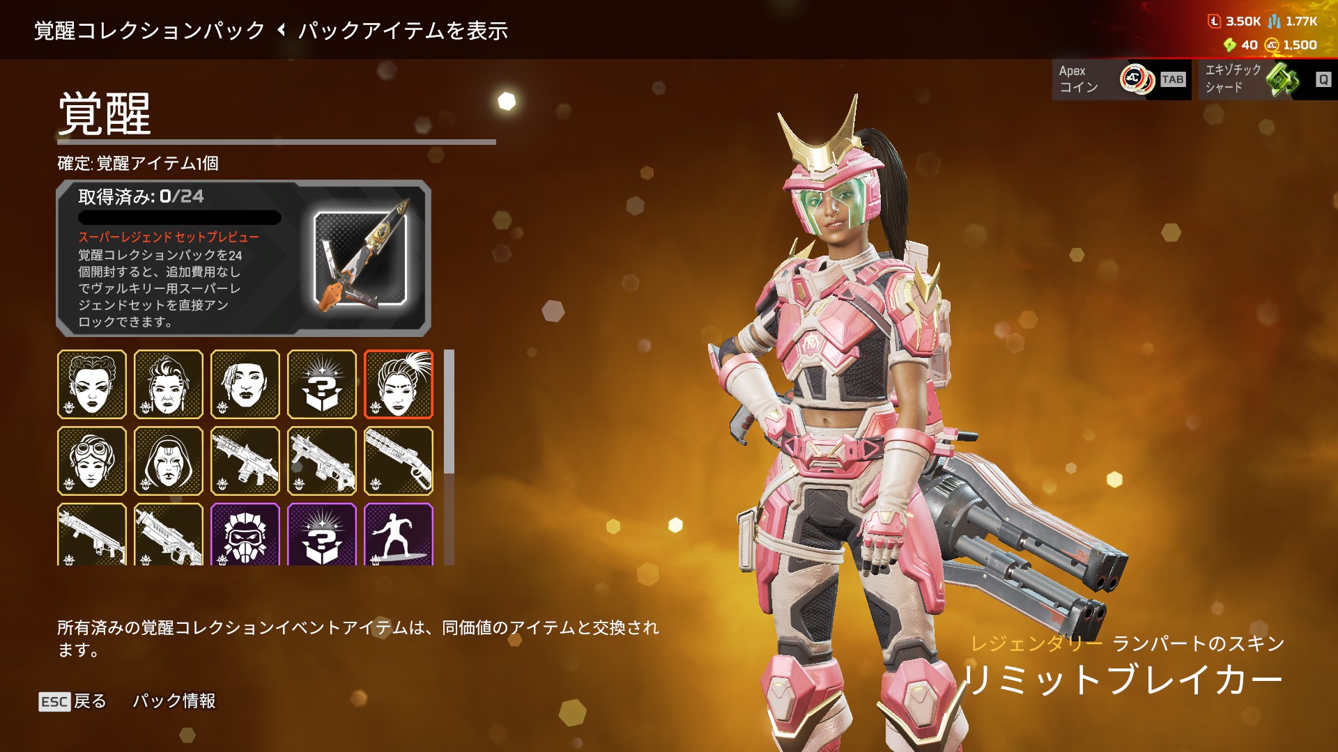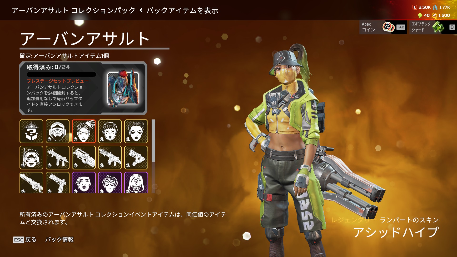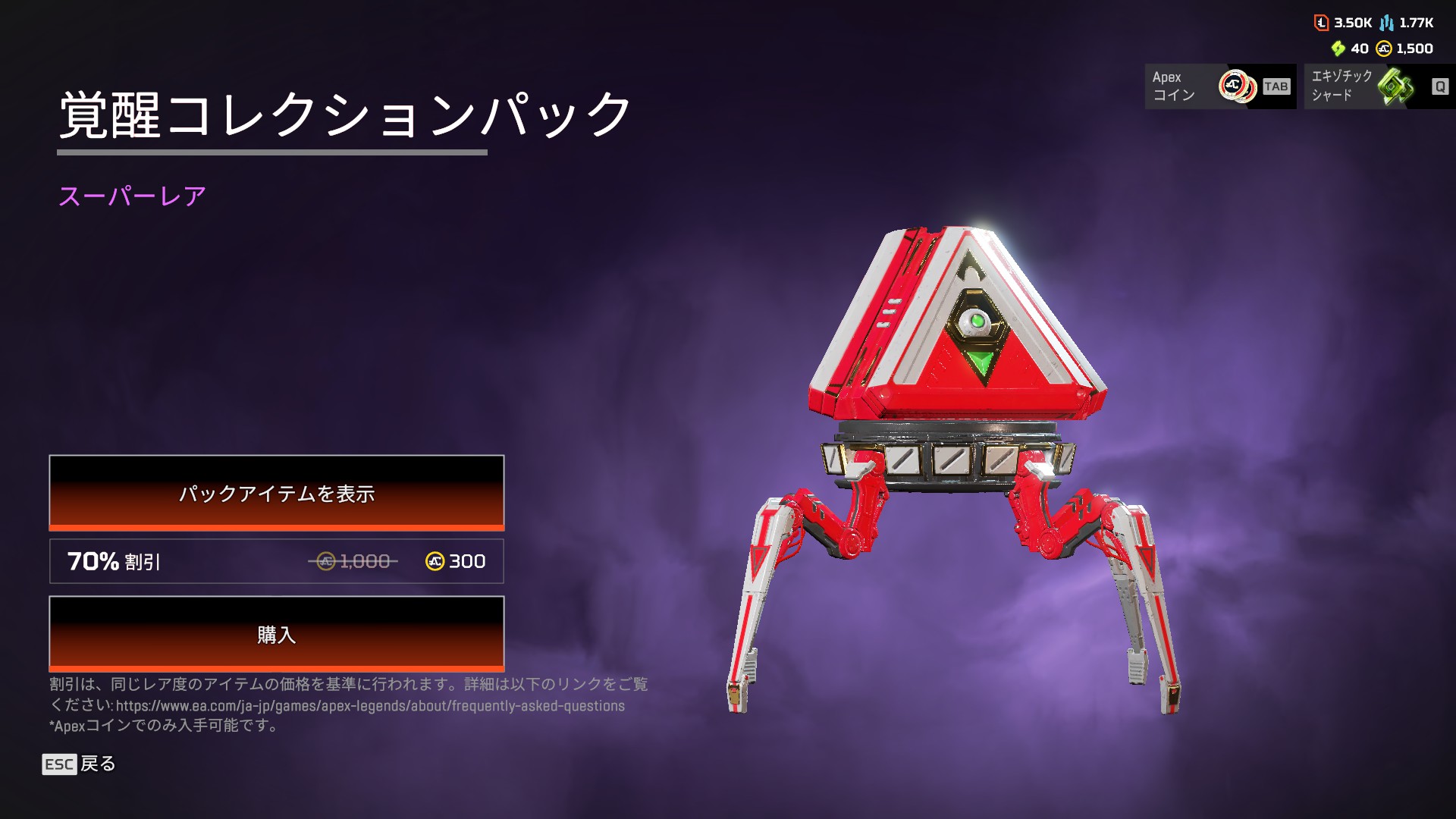 過去に開催されたコレクションイベントのアイテムが入手可能なパックで、コンプリートするとオクタンのプレステージスキン&ヴァルキリーのスパレジェが入手可能になっています。