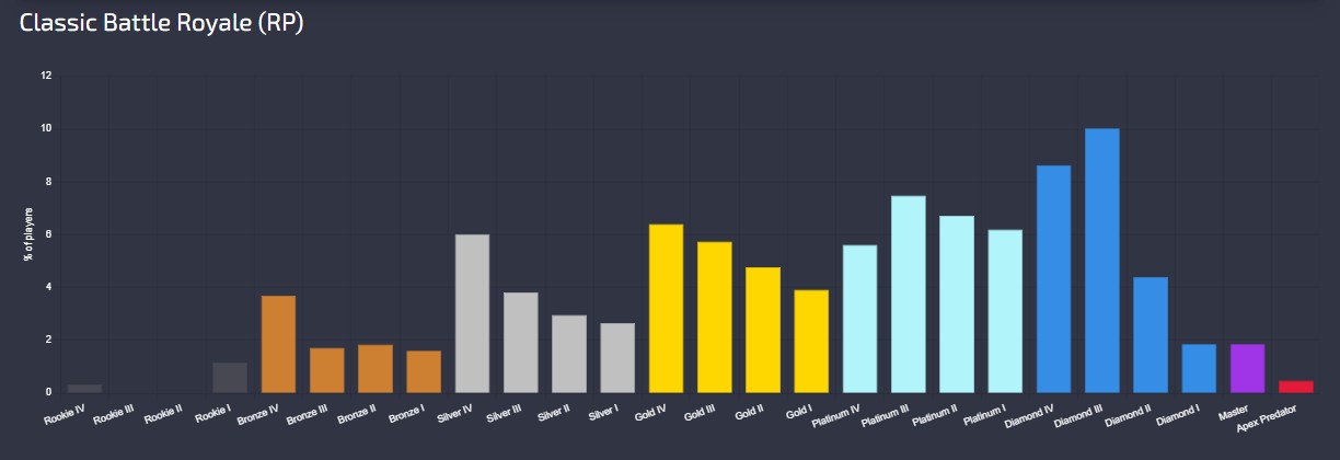 Apexlegendsstatus.comによる現在の『ランク分布率』は下記の様になっているとの事です。