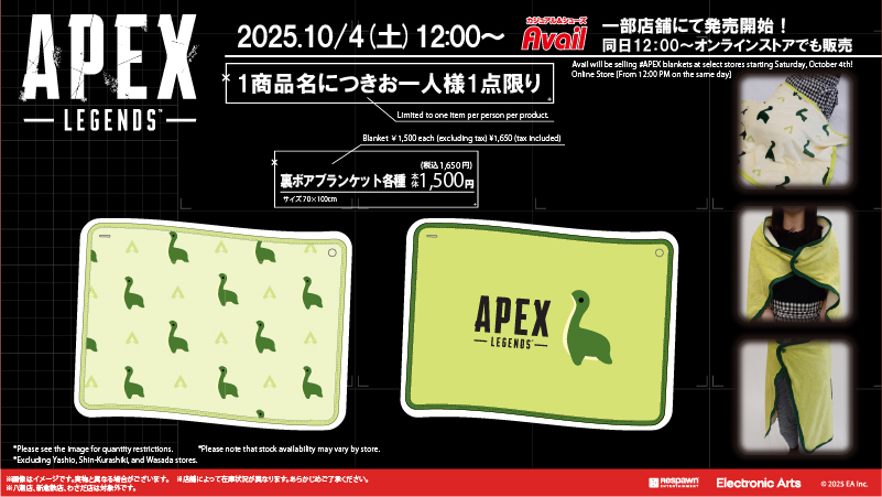 10/4(土)から #ApexLegends のブランケットが #アベイル の一部店舗にて発売開始!