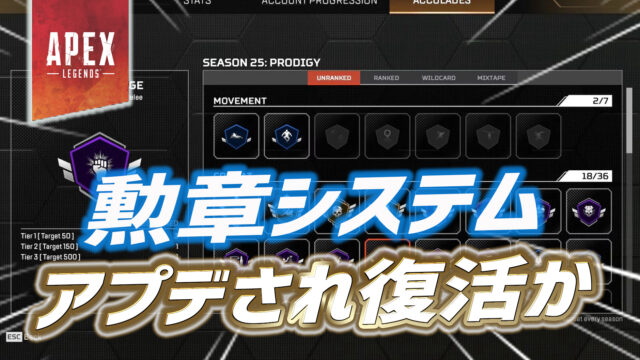 噂 【Apex】勲章システムが新機能を携えて今後復活か 9月 20, 2025 yo https://apexlegends-leaksnews.com/wp-content/uploads/2019/12/8904760a83ac8e439606921e514c72cd.png Apex Legendsまとめ速報 – えぺタイムズ 勲章システムが新機能を携えて今後復活か APEXで実装後すぐに削除されていた勲章システムが復活する可能性があるとのリーク情報が言及され …